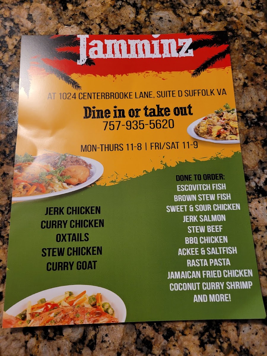Welcome to Jamminz, a hidden gem located at 1024 Centerbrooke Ln in Suffolk, VA. This vibrant eatery specializes in authentic Jamaican cuisine that tantalizes the taste buds. Customers revel in dishes like jerk chicken, praised for its unmatched tenderness and flavor. The curry with rice and peas has also garnered rave reviews, showcasing the rich, aromatic spices central to Jamaican cooking.